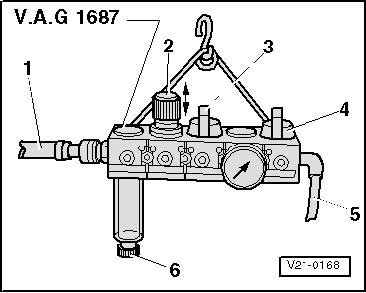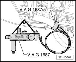 - Before removing adapter, discharge pressure in testing circuit by pulling off coupling from adapter V.A.G 1687/5.