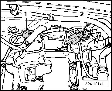 - Disconnect the electrical harness connector - 1 - from Camshaft Adjustment Valve 1 (N205).