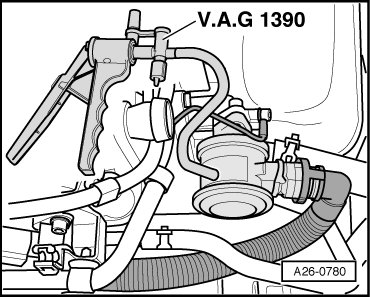 - Connect hand vacuum pump (V.A.G 1390) to combination valve vacuum connection.