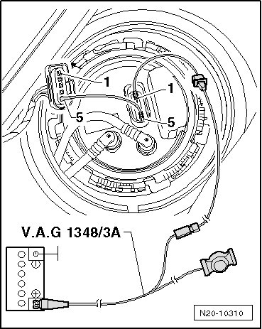 - Disconnect harness connector - 1 - from fuel delivery unit.