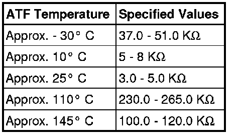 - Using a multimeter, check the Transmission Fluid Temperature Sensor (G93) terminals 1 to 2 for resistance.