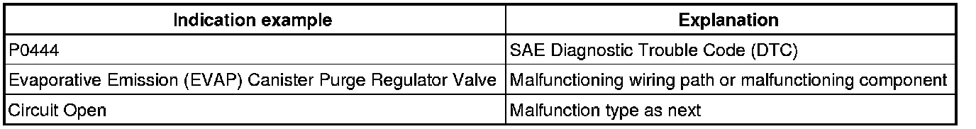 The following table is an example of the DTC information that may be displayed on the scan tool screen: