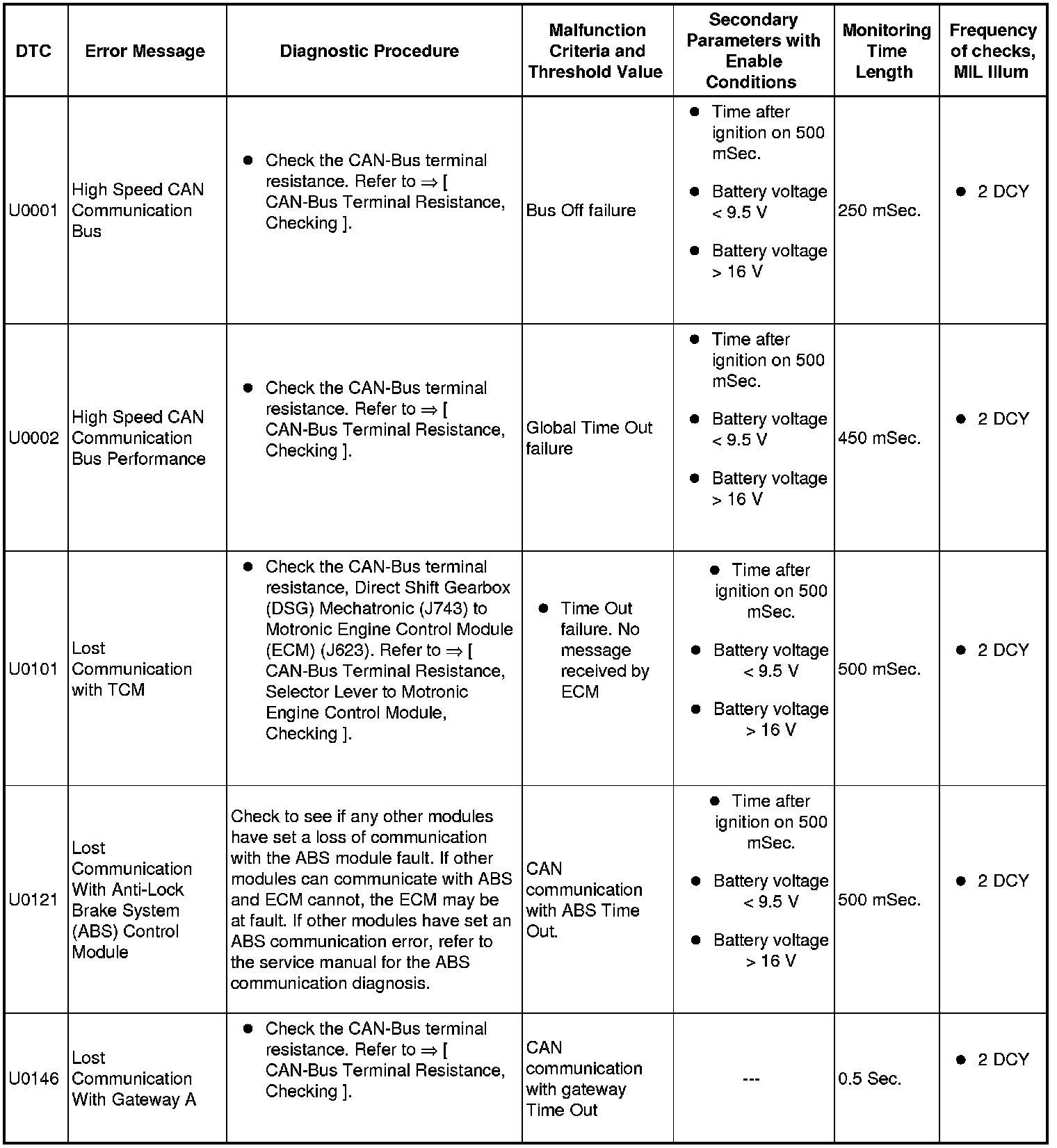 A L L Diagnostic Trouble Codes ( DTC )