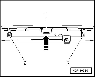 - Release catch - 1 - and remove High level brake light bulb (M25) toward back from roof edge spoiler.
