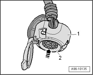 - Press the connectors - 2 - in the - direction of the arrow - out of the Trailer Socket (U10) - 1 -.