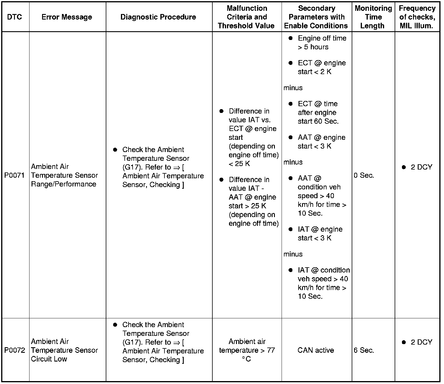 DTC Tables
