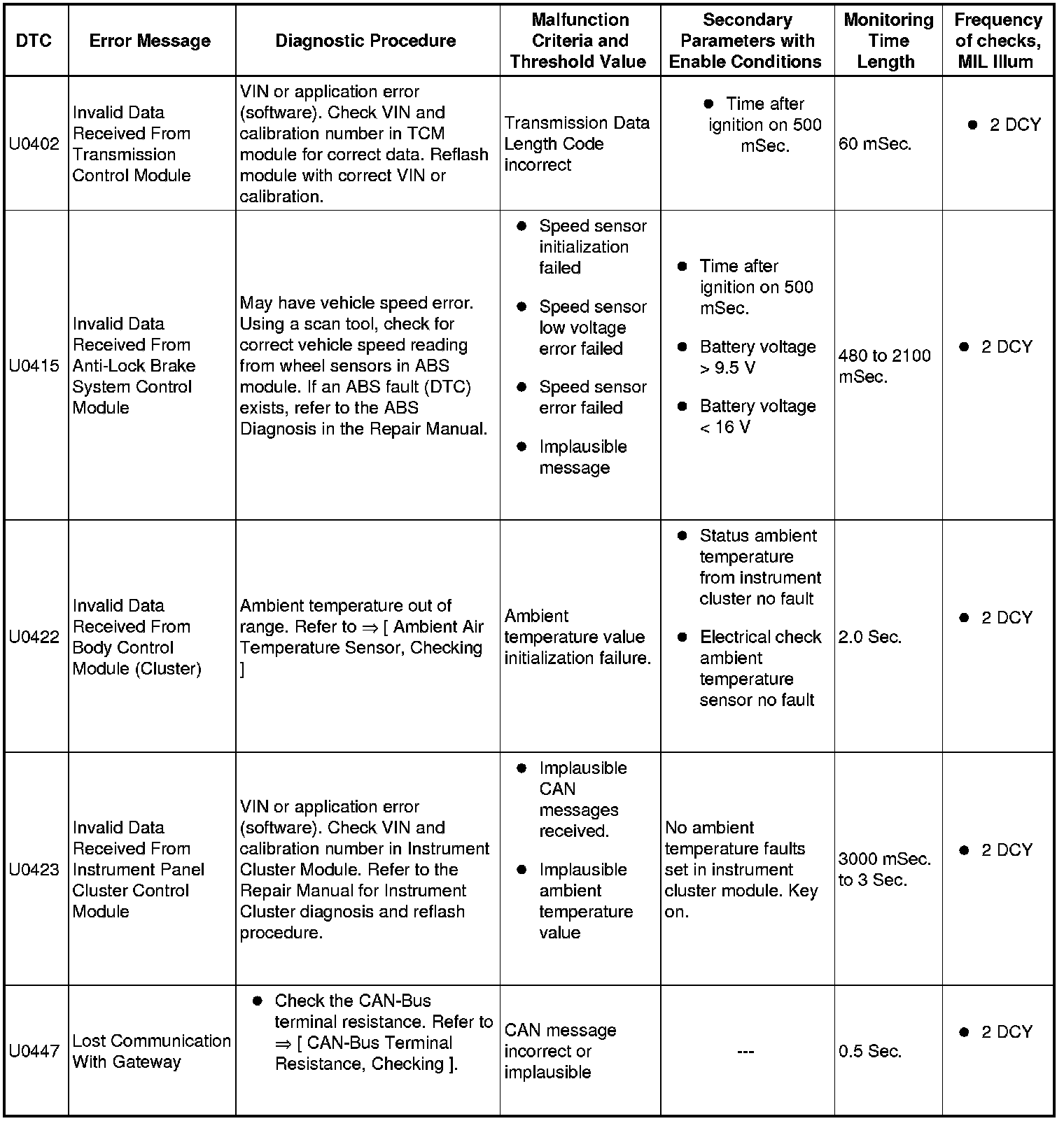 A L L Diagnostic Trouble Codes ( DTC )