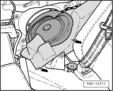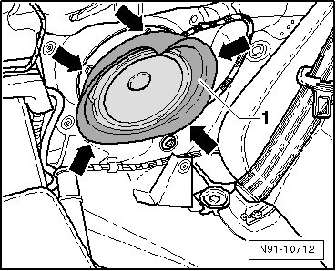 - Remove rubber spacer ring - 1 - from speaker. Remove mounting bolts at speaker - arrows -.