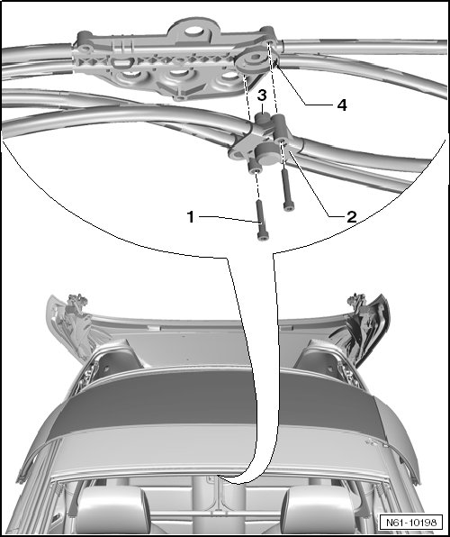 - Remove screws - 3 - and remove sunroof motor - 2 - from mount - 4 -.