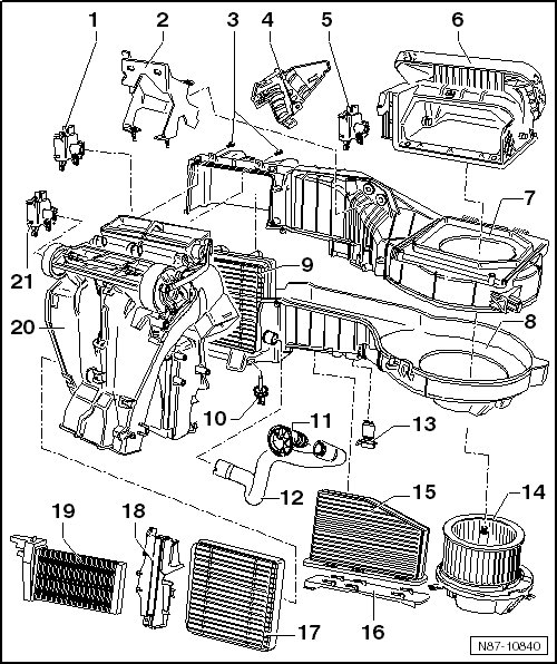 • Removing and installing, refer to => [ Fresh Air Blower Series Resistor with Fuse (N24) ] Service and Repair.