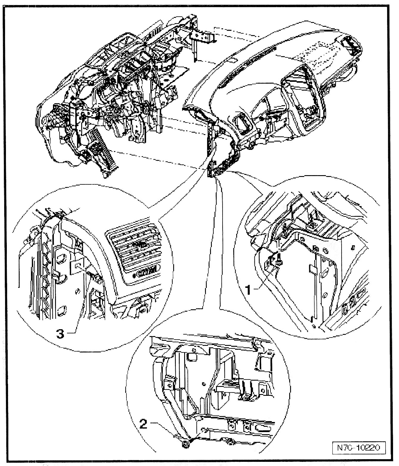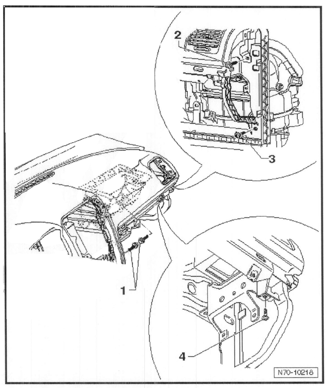 - Pull instrument panel out of mounts - 1 - in windshield transition area.
