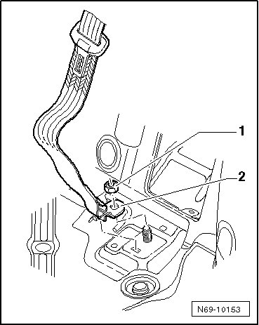 - Remove nut - 1 - (40 Nm) and remove belt anchor - 2 - from body.