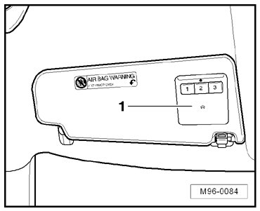 - Remove the driver side sun visor with the garage door opener control head - 1 -.