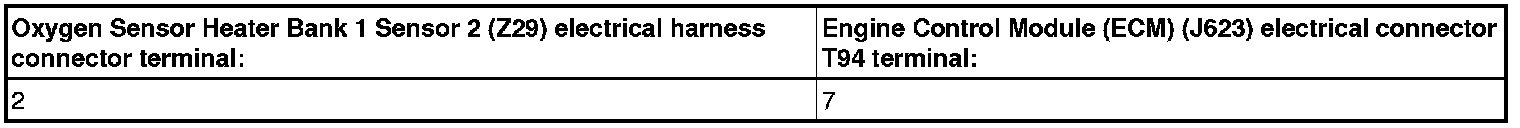 - Using a multimeter, check the Oxygen Sensor Heater Bank 1 Sensor 2 (Z29) terminals 1 to 2 for resistance.