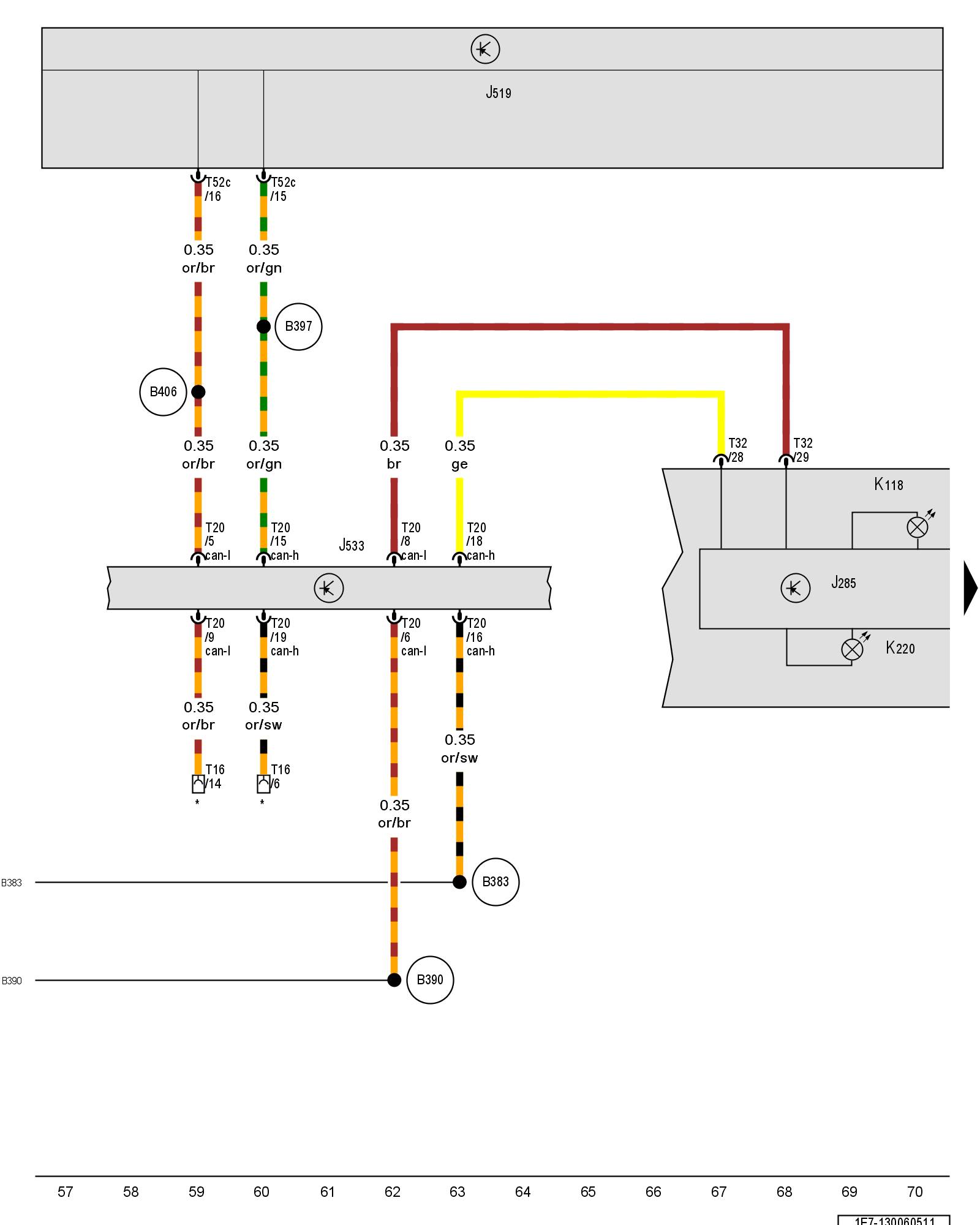 (B397) - Comfort system CAN bus high connection 1 (in main wiring harness)