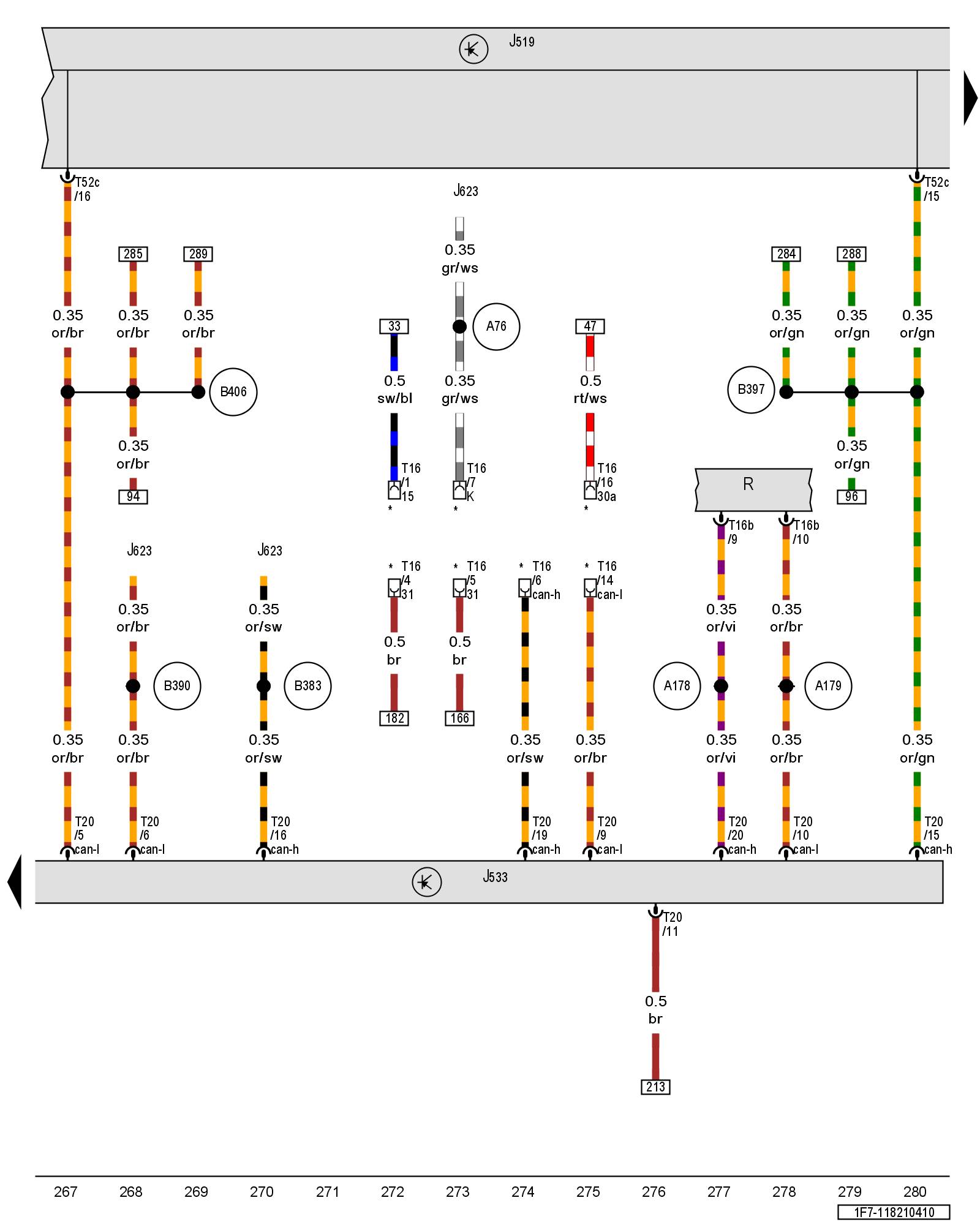 (A178) - Infotainment CAN bus high connection (in instrument panel wiring harness)