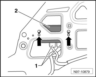 - Loosen the screws - arrows - and remove the Towing Recognition Control Module - 2 - from the mounting holes.
