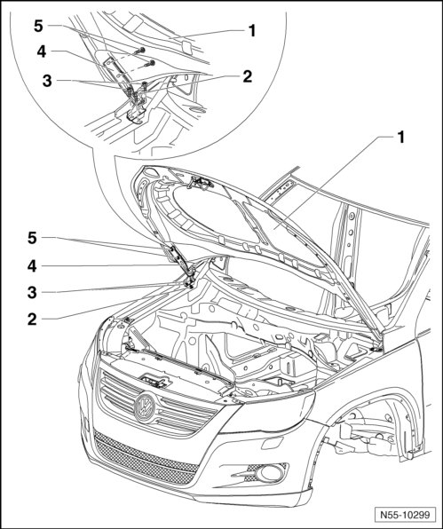 • Removing and installing the right hinge is described. Removing and installing the left hinge is identical.