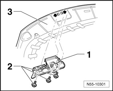 • To adjust the catch - 1 - just loosen the bolts - 2 - and slide the catch into the elongated holes - arrows -.