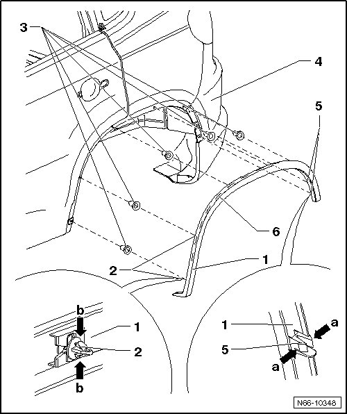 - Press the clips - 6 - out of the grommets - 5 -- arrows b -.