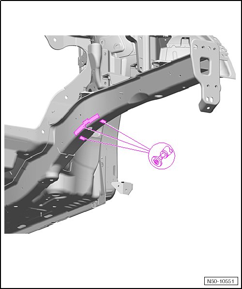 • In the example, replacement of retaining bracket for subframe is described for left front retaining bracket on this vehicle. The work procedure is performed in a similar manner for the other 3 retaining brackets.
