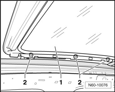 - Remove the left and right screws - 2 - from the glass sunroof panel - 1 -.