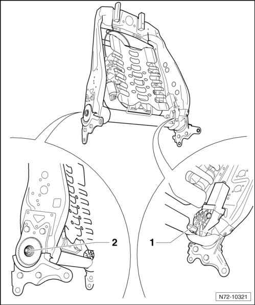 - Remove the drive for the backrest adjustment - 2 - from the backrest frame.