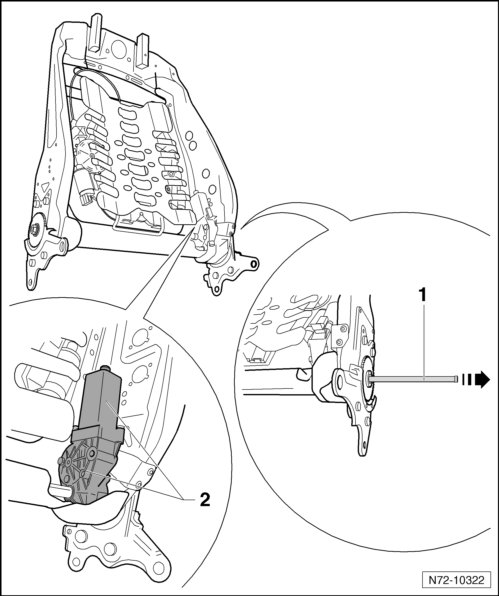 - Remove the transfer rod - 1 - from the backrest frame - arrow -.