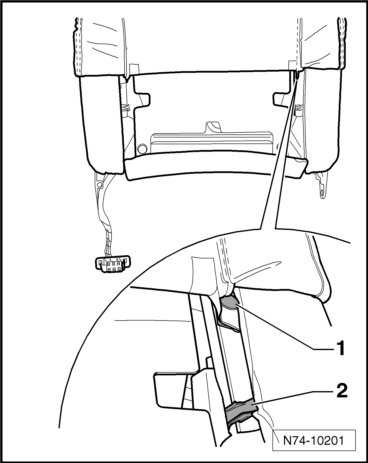 - On vehicles with heated seats, guide the wiring harness - 1 - through the opening in the cushion.