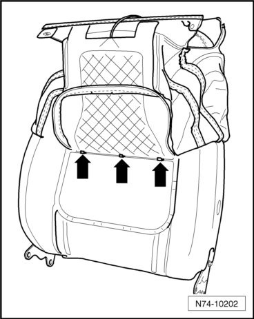 - Remove the right and left clip on the back side of the backrest with release tool (T10236) - 1 -.