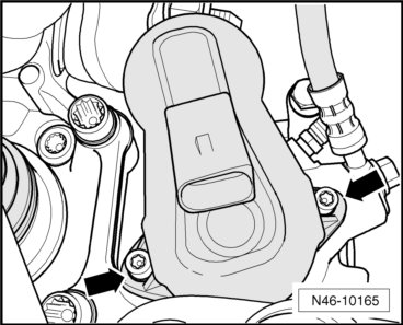 - Remove both inner TORX(R) bolts - arrows - on the parking brake motor.
