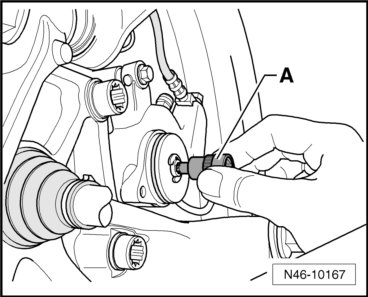 - Rotate the spindle back slightly with an 8 mm multi-point socket - A - until the parking brake motor can be positioned correctly.