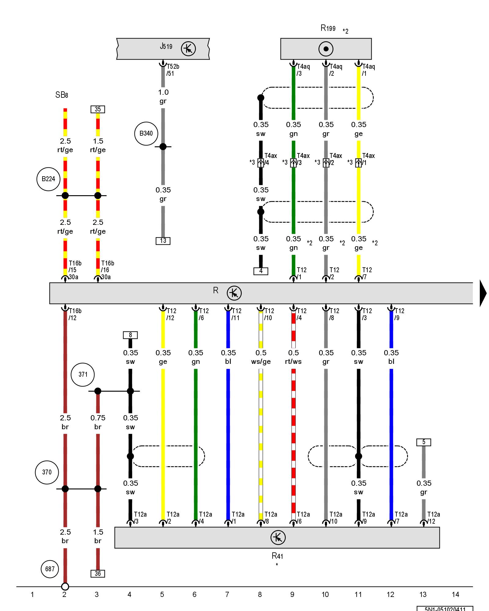 (B224) - Radio connection 1 (in interior wiring harness)
