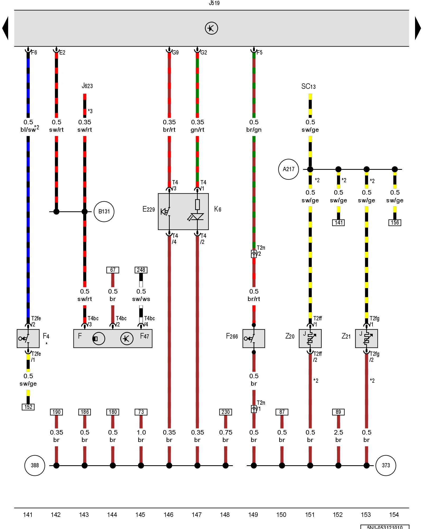 (A217) - Positive connection 8 (15a) (in instrument panel wiring harness)