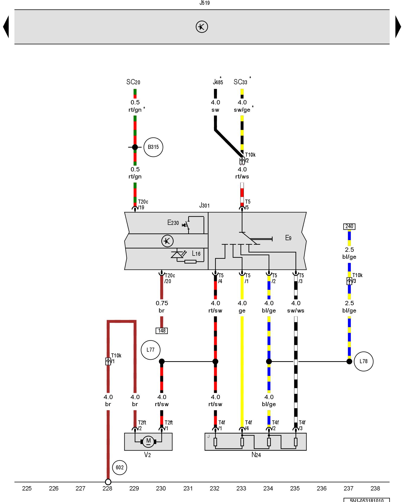 V2 - Fresh air blower Pass Compartment Climatronic (Automatic Climate Control) Diagrams