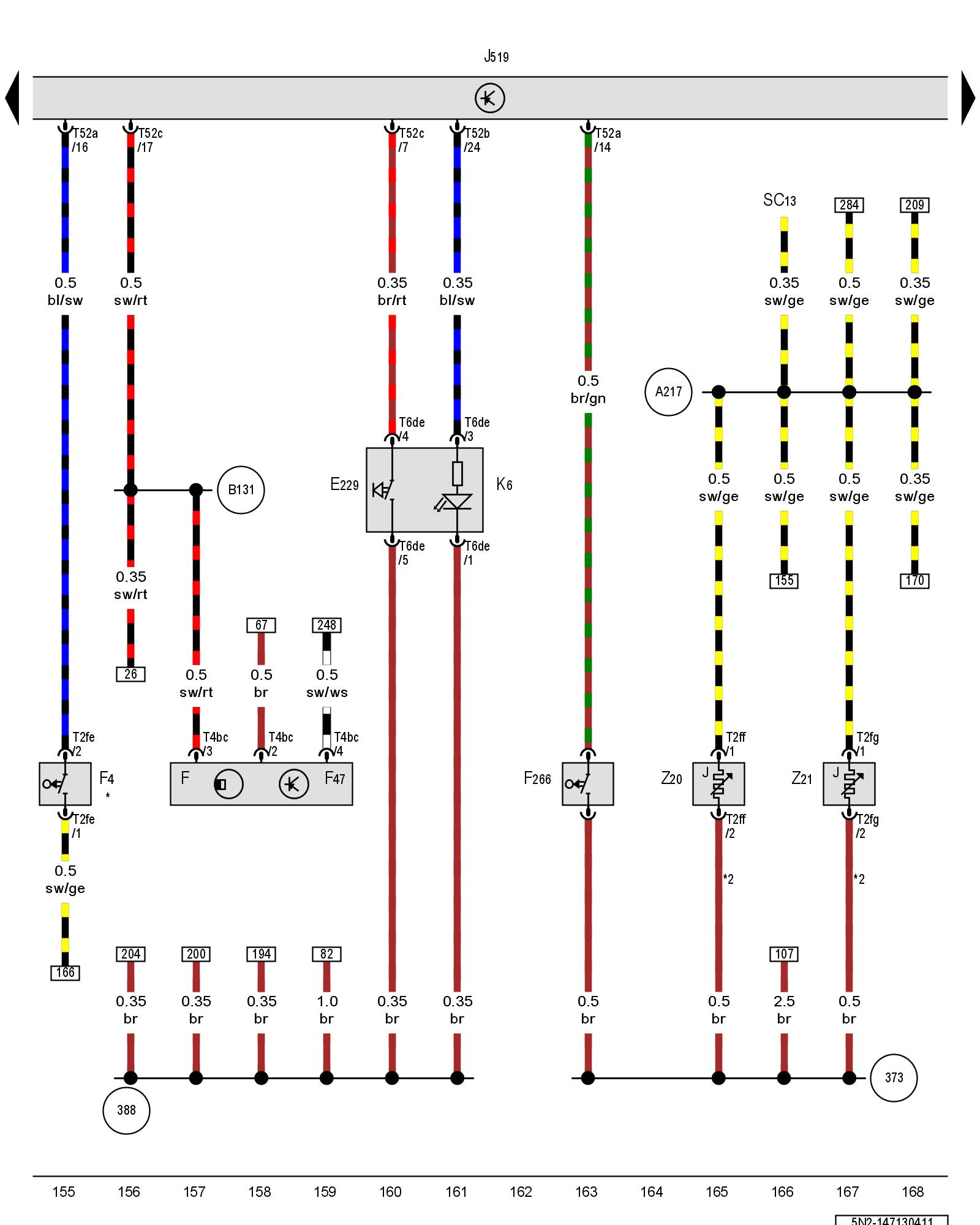(A217) - Positive connection 8 (15a) (in instrument panel wiring harness)