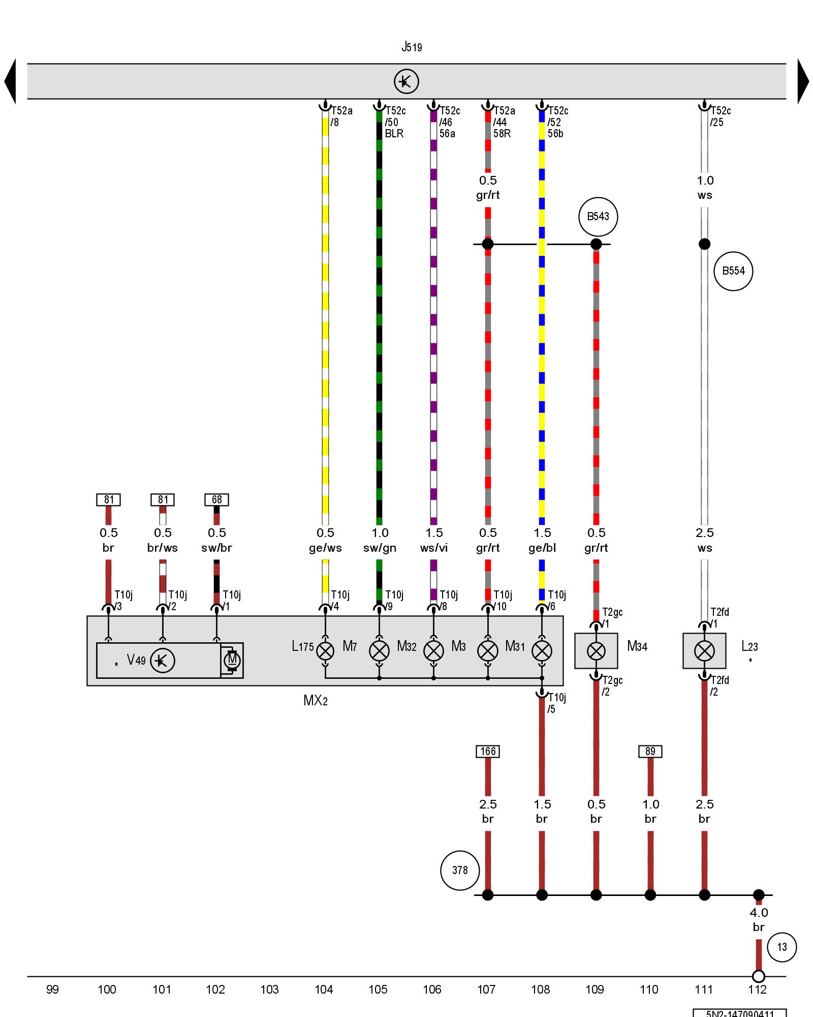 (B543) - Positive connection (58R) (in main wiring harness)