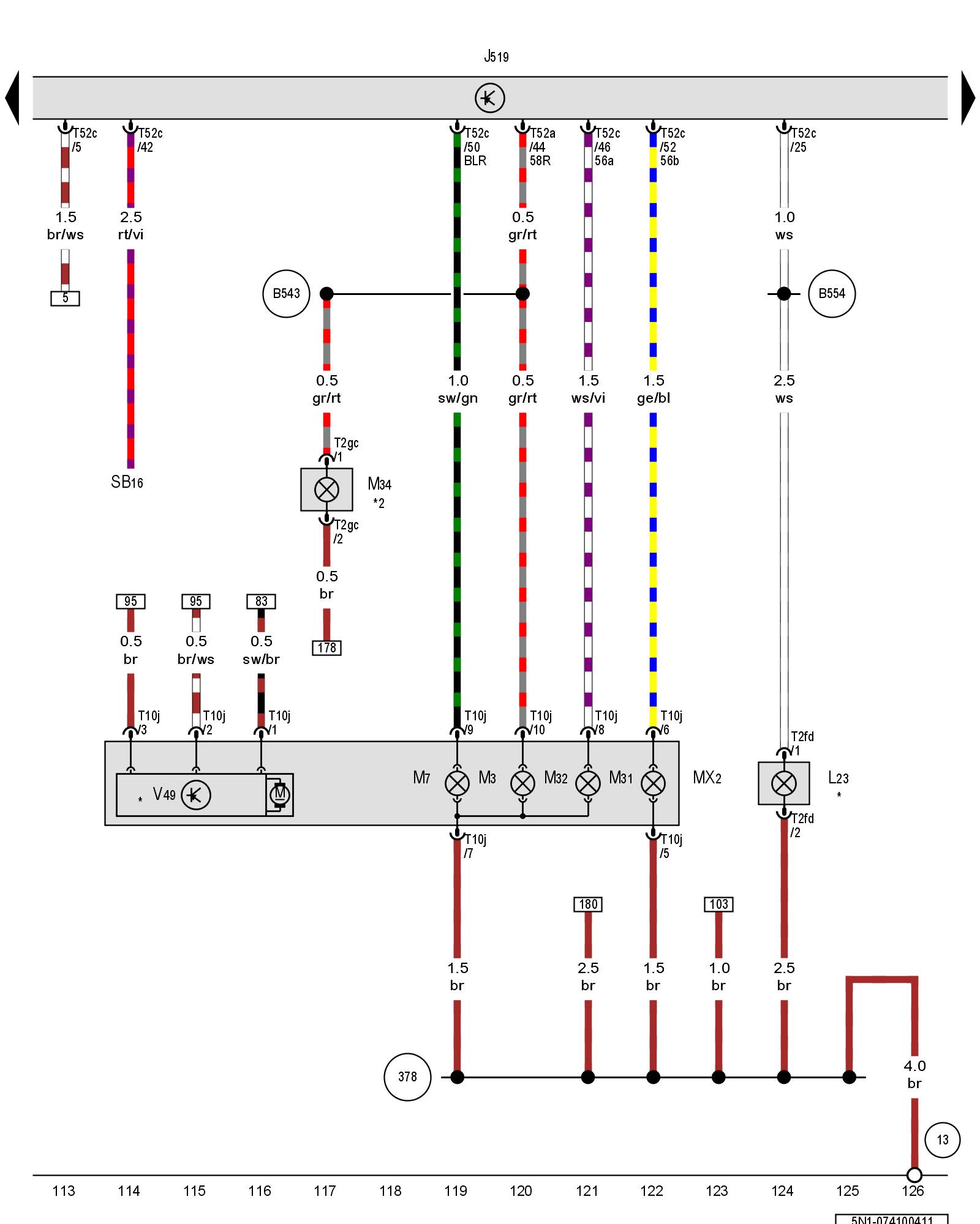 (B543) - Positive connection (58R) (in main wiring harness)