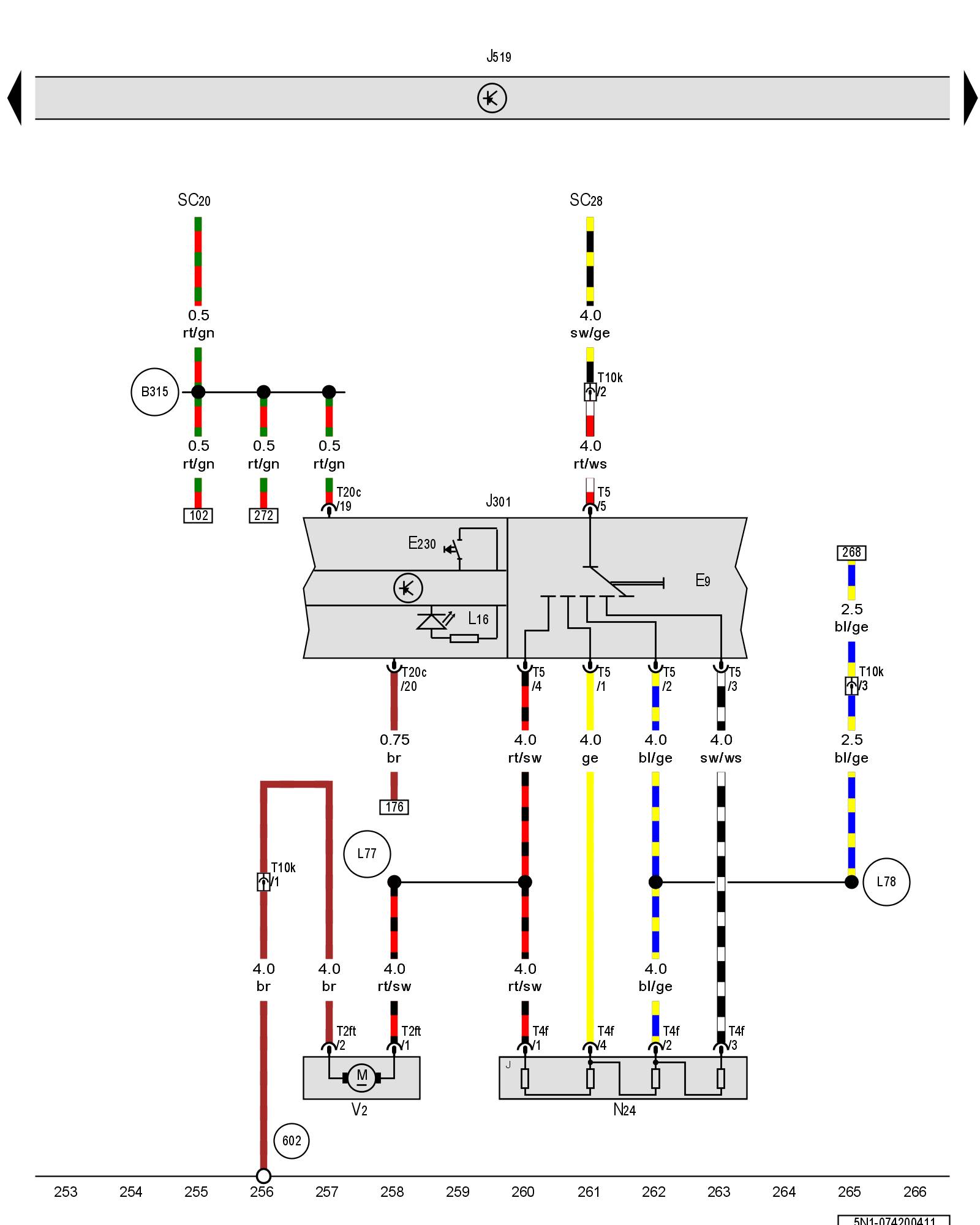 V2 - Fresh air blower Pass Compartment Climatronic (Automatic Climate Control) Diagrams