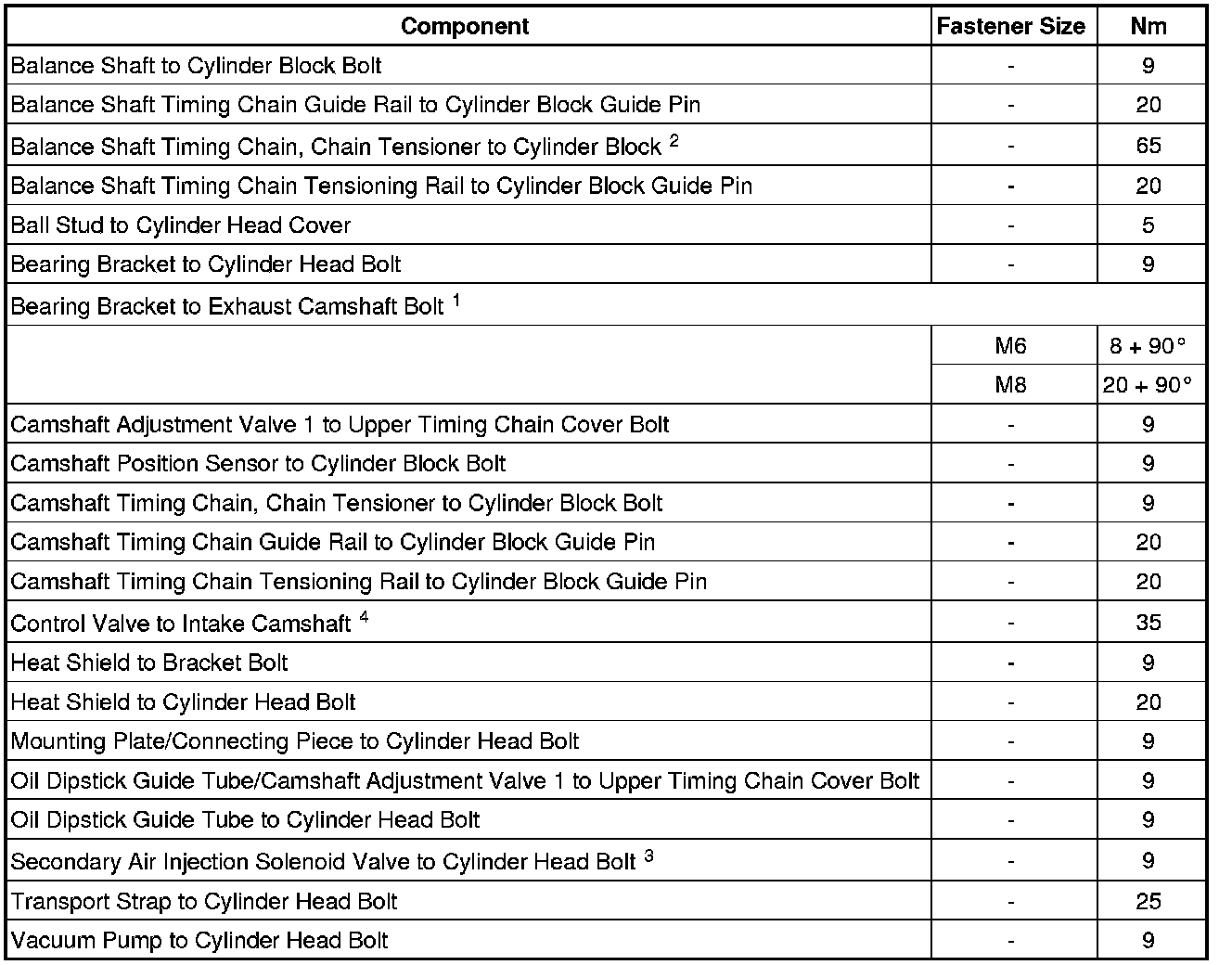 Cylinder Head, Valvetrain - Fastener Tightening Specifications