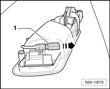 - Pull the driver inside door handle illumination bulb in - direction of arrow - from its mount.