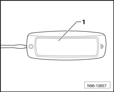 - Release the right interior lamp - 1 - retainer using (VAS 3409) or a screwdriver and remove it from the roof trim panel while being careful of connected wires.
