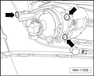 - Remove the three screws - arrows - and the fog lamp housing from the bumper.