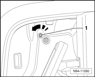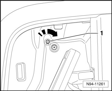 - Turn the screw - 1 - in - direction of arrow - approximately 90° until it stops and close the flap in the side panel.