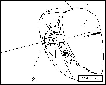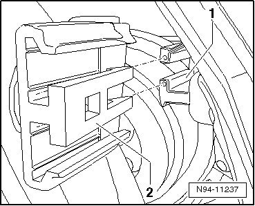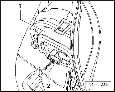 - Pull the tail lamp - 1 - in - direction of arrow - out of the catches - 2 - and straight out of the body cut-out, while being careful of connected wires.