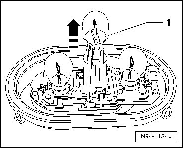 - Pull the turn signal bulb - 1 - in - direction of arrow - out of the bulb holder.