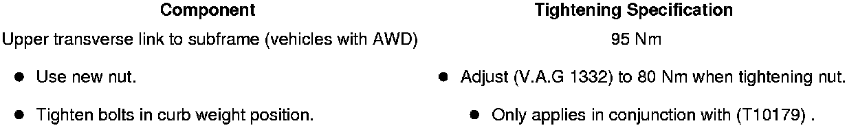 - Loosen nut - A - of threaded connection of upper transverse link at subframe.