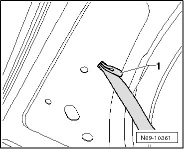 - Carefully remove the clip - 1 - from the A-pillar bracket using release tool (T10236).