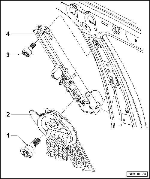- Remove bolt - 3 - (20 Nm) and separate belt height adjuster - 4 - from mounting in carrier plate.
