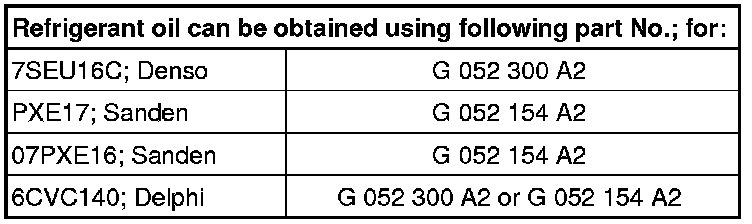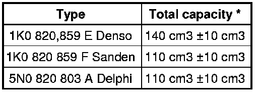 * This quantity of refrigerant oil is in a replacement A/C compressor and equates to the total capacity.